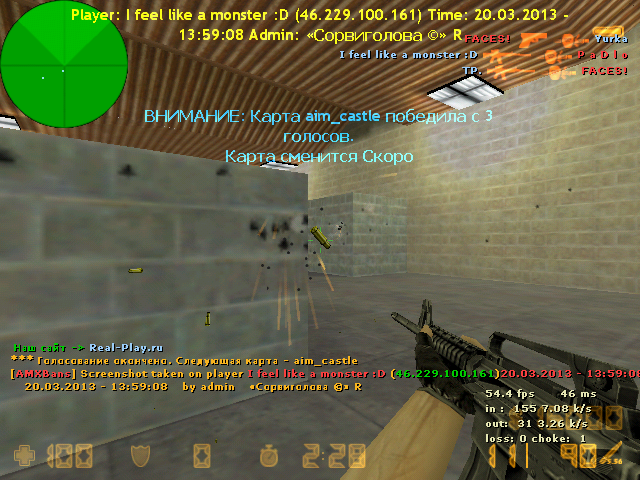 I feel like a monster :D Опубликовано 20 марта, 2013 Опубликовано 20 марта, 2013 1) I feel like a monster :D 2) "Сорвиголова" 3) 20.03.13 только что(( 4) Походу античит 5) [AMXBans] =============================================== [AMXBans] Вы были забанены на этом сервере админом ??????????? R. [AMXBans] Вы забанены навсегда. [AMXBans] Ник: I feel like a monster :D [AMXBans] Причина: [AD]AIM [AMXBans] Вы можете подать апелляцию @ real-play.ru/ [AMXBans] Ваш SteamID: STEAM_0:0:523590580 [AMXBans] Ваш IP: 46.229.100.161 [AMXBans] ======================================= 6)46.229.100.161 7) Скрины http://real-play.ru/uploads/imgs/pre_1363775646__ak-47_map0000.jpeg 8) Демо http://rghost.ru/44628691 В демо видно что играл без какого-либо аима. Прошу разбанить.P.S. Надеюсь доказал свою невиновность.